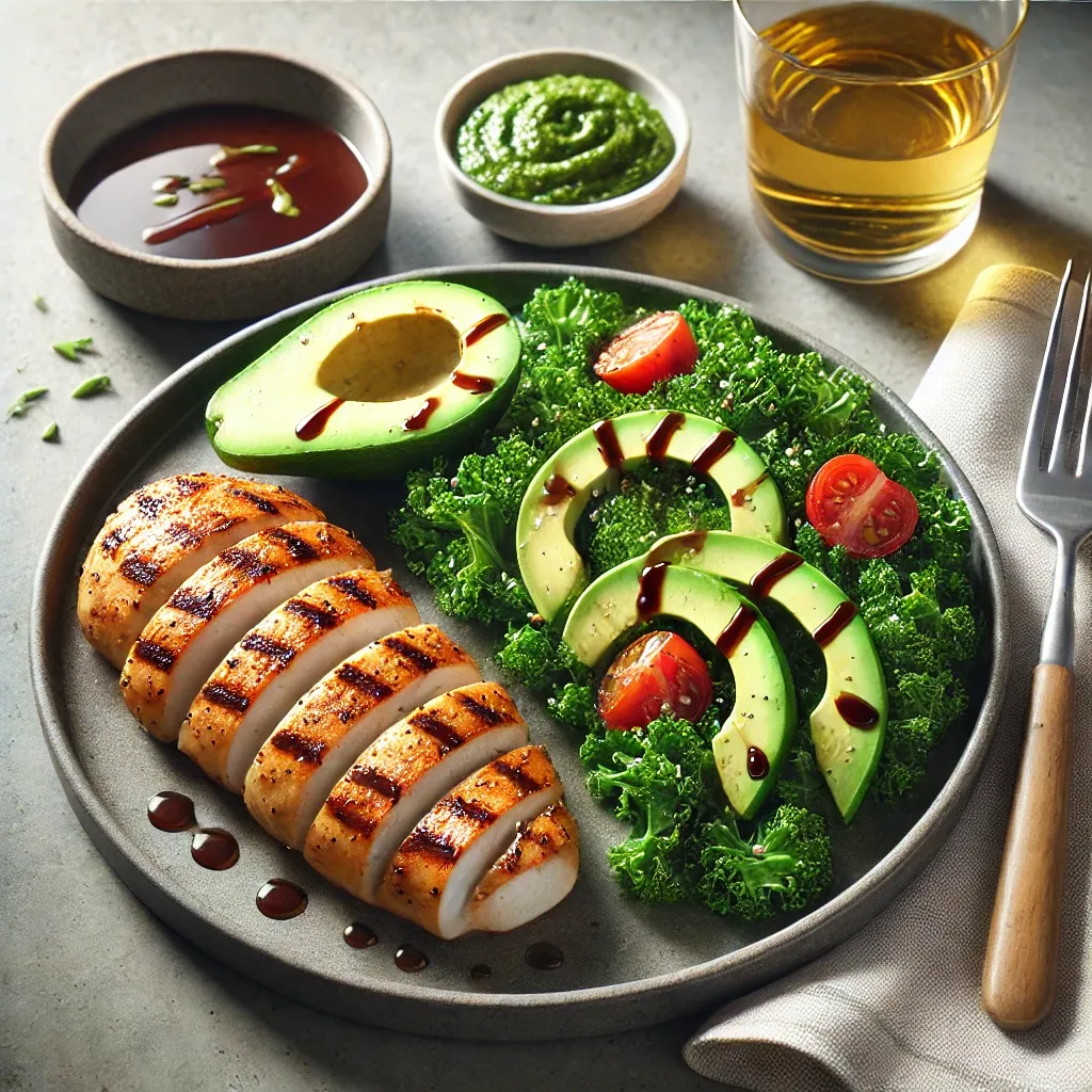 설명: 두 번째 날은 고단백 재료와 함께 신선한 채소를 곁들여 비타민과 미네랄 섭취도 챙기는 것이 중요합니다. 케일과 아보카도는 항산화 성분과 건강한 지방이 풍부해 체내 염증을 줄여줍니다.